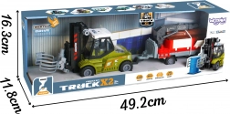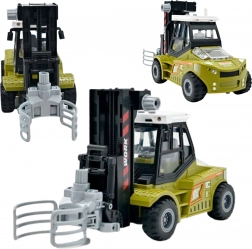 Das realistische Modell im Maßstab 1:43 begeistert kleine Fans von Bau- und Transportmaschinen. Der Gabelstapler verfügt über einen Schwungmassetantrieb – einfach anschieben und er fährt nach vorne. Der bewegliche Arm mit Greifzange ermöglicht das Anheben und Transportieren von Holzstämmen, während der Anhänger mit aufklappbaren Seitenwänden das Be- und Entladen erleichtert.