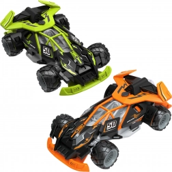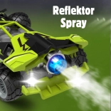 Große Geländeräder bieten guten Grip auf Teppichen, Parkett und dem Gehweg. Das Auto verfügt über einen ON/OFF‑Schalter und einen Lenk‑Trimmregler am Fahrgestell für eine präzise Einstellung. Der hintere „Reaktiv“-Effekt mit Dampf sorgt für ein unterhaltsames visuelles Highlight.
