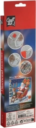 Anleitung: Die Oberseite der Leinwand ist mit einer Folie und Klebeschicht abgedeckt – ziehen Sie diese entsprechend Ihrem Arbeitsfortschritt nach und nach ab. Orientieren Sie sich an der Legende mit Symbolen und den Nummern der Beutel. Geben Sie etwas Wachs in die Stiftspitze und setzen Sie die Steinchen auf die entsprechenden Felder. Nach Abschluss einer Farbe geben Sie die Steinchen zurück in den Beutel und fahren mit der nächsten Farbe fort. Hinweis: Rahmen ist nicht im Lieferumfang enthalten.
