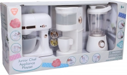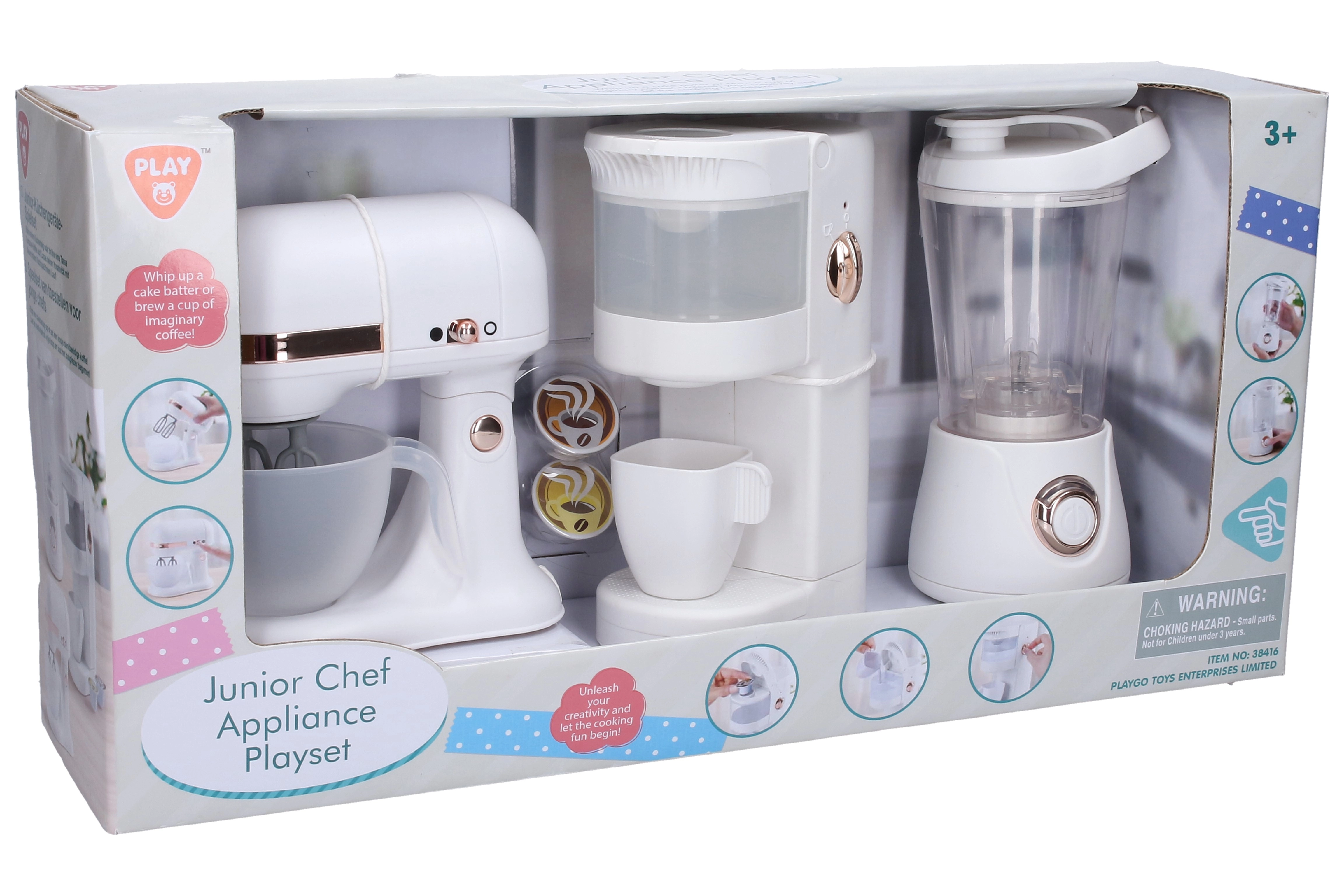 Dieses 3-in-1-Set von PLAYGO ist ideal für kleine Köchinnen und Köche. Kinder haben Spaß beim „Kaffeezubereiten“ mit der Kaffeemaschine mit echtem Wassertank, beim Mixen von Getränken im Mixer und beim Rühren in der Küchenmaschine. Rollenspiele rund um den Haushalt fördern Feinmotorik, Kreativität und soziale Fähigkeiten.