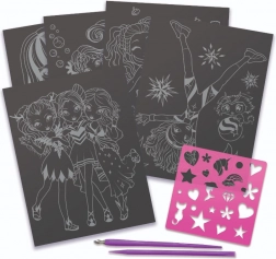 5 Kratztafeln, 2 Kratzwerkzeuge, 21 Schablonen, Anleitung und Isadoras Geschichte