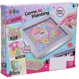 Die Vorgehensweise ist einfach: Ziehen Sie die Schutzfolie vom vorgedruckten Bild ab, drücken Sie die Stiftspitze in das Wachs, nehmen Sie ein Steinchen auf und platzieren Sie es an die entsprechende Stelle. Folgen Sie den Farben und sehen Sie zu, wie das Motiv nach und nach erstrahlt.