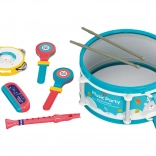 Das Set ist ideal für die erste Begegnung mit Musik – vom Trommeln über das Klingeln mit dem Tamburin bis hin zu Blasinstrumenten. Die praktische Kombination der Instrumente bietet eine vielfältige Klangpalette und Anreize, die das Hörvermögen und die Koordination fördern.
