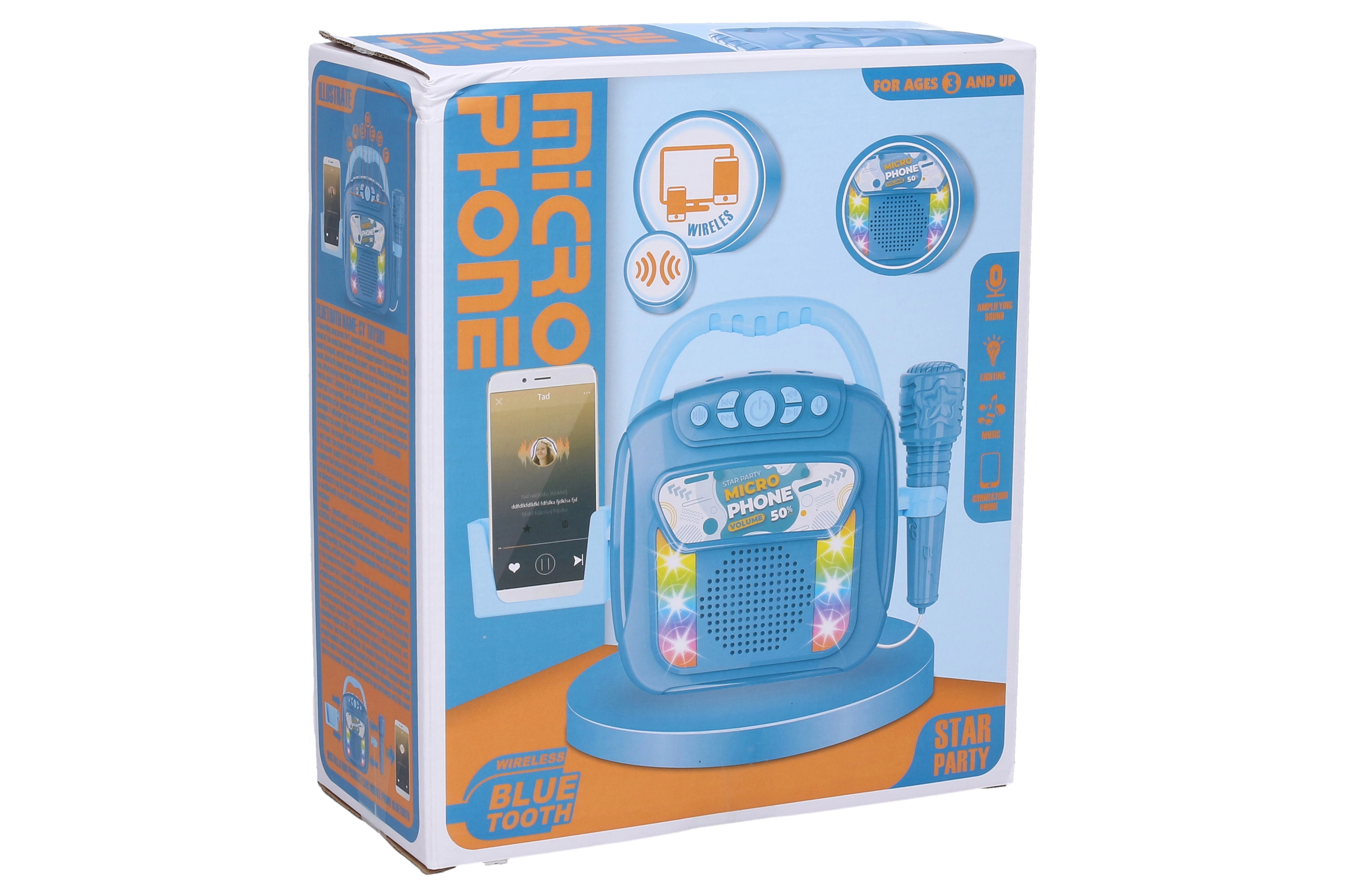 Genießen Sie zu Hause und unterwegs Spaß mit der kompakten 28 cm großen Musikbox. Dank Bluetooth verbinden Sie bequem Ihr Mobiltelefon, spielen Lieblings-Playlists ab und singen mit dem mitgelieferten Mikrofon Karaoke. Integrierte Lichteffekte unterstreichen die Stimmung jeder Party.