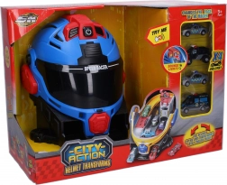 Komplettes Polizeiset für kleine Gesetzeshüter: Station mit Helm und Aufzug, 4 Metallautos und ein funktionaler Helm mit Licht- und Soundeffekten. Abmessungen der Anlage 20 × 32 × 20 cm, inklusive 3× AG13-Batterien und Autos mit Freilaufrädern.