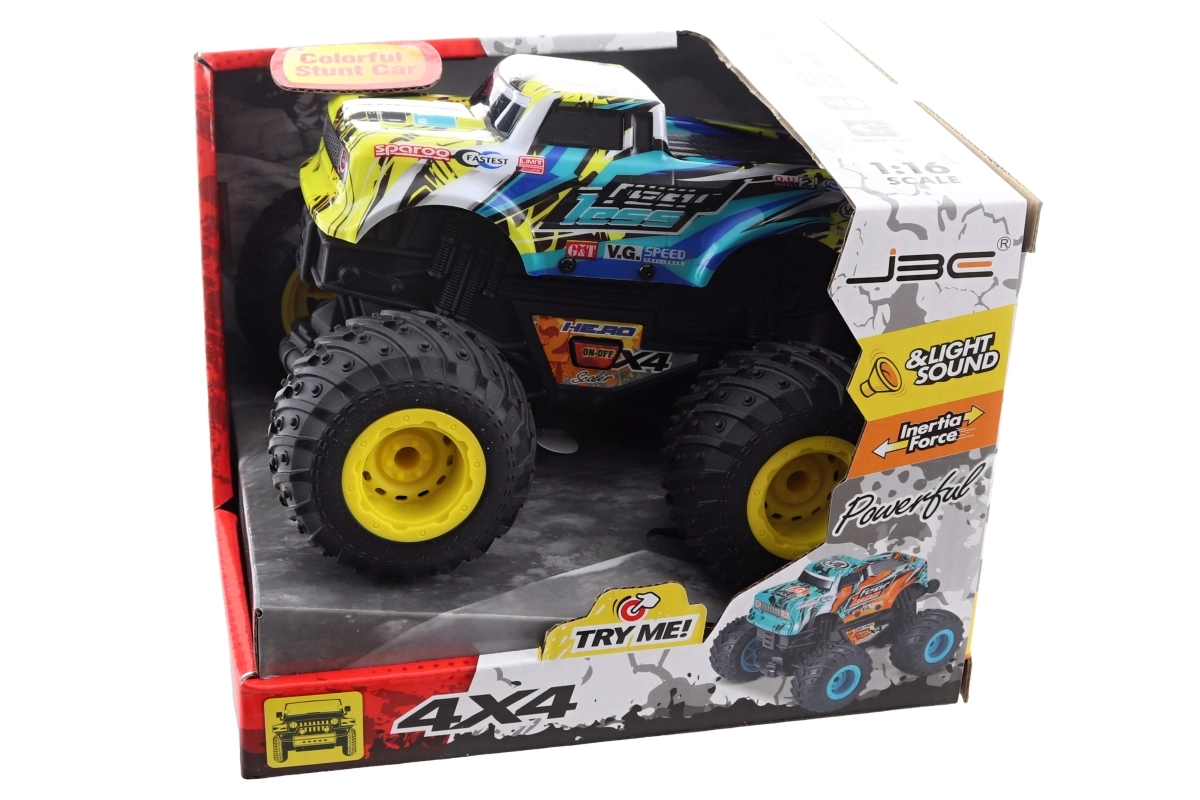 Das Spielzeug besteht aus robustem Kunststoff und wird in einer offenen Box geliefert, sodass Farbe und Details sofort sichtbar sind. Die Stromversorgung übernehmen 3× AG13-Batterien, die bereits enthalten sind – das Auto ist somit direkt nach dem Auspacken einsatzbereit.