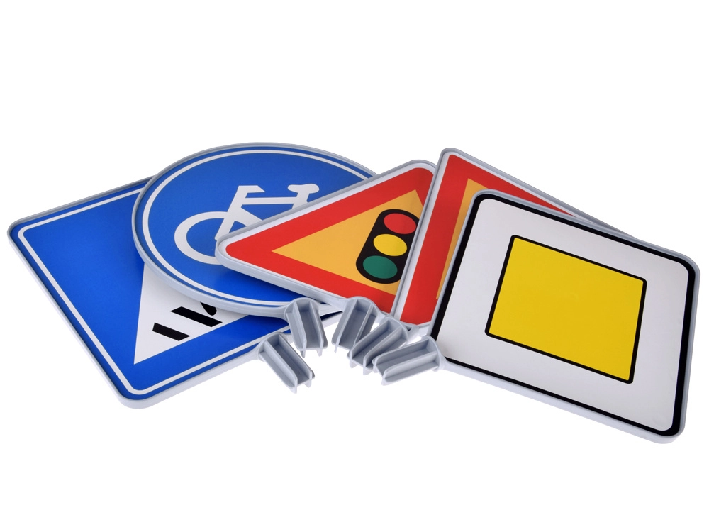 - 5 Figuren/Schilder (Ampel, Fußgängerüberweg, Vorfahrtstraße, Kreisverkehr, Radweg)