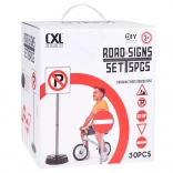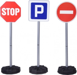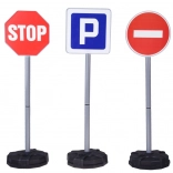 Dieses interaktive Set enthält 5 der beliebtesten Verkehrsschilder: Baustelle, Vorfahrt gewähren, STOP, Parkplatz und Einfahrt verboten. Der Aufbau ist einfach – jeder Ständer besteht aus Standfuß, Rohren und Verbindern. Die Standfüße können für maximale Stabilität mit Wasser oder Sand befüllt werden, selbst bei lebhaftem Spiel.