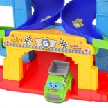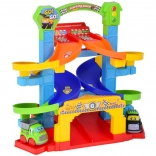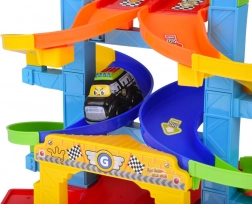 Diese spiralförmige Autorennbahn ist eine großartige Wahl für die ersten Rennen kleiner Fahrer. Bunte Spiralstrecken, ein Starttor und stabile Pfeiler sorgen für eine gleichmäßige Fahrt der Autos von oben nach unten. Beim Spielen trainieren Kinder die Hand-Auge-Koordination, entwickeln Logik und Vorstellungskraft und lernen gleichzeitig die Prinzipien von Ursache und Wirkung.