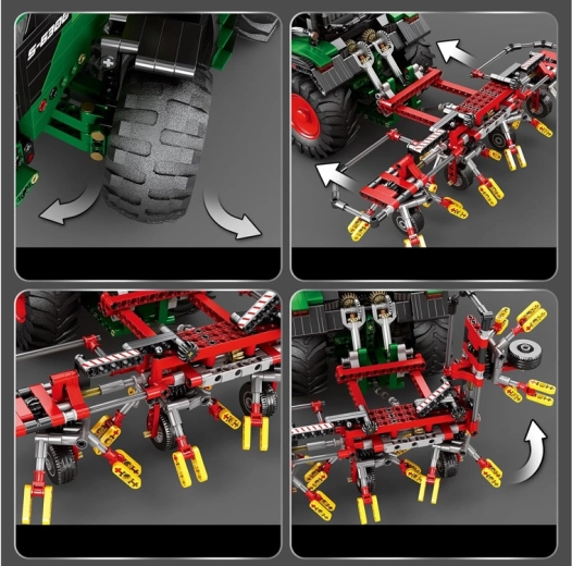 Dieser technische Bausatz begeistert Fans von Maschinen, Mechanik und Modellen. Die grüne Kabine, massiven Reifen mit markantem Profil und die gezogenen Eggen bilden einen modernen Landtraktor detailgetreu nach. Dank Fernsteuerung und Motoren genießen Sie sanftes Fahrverhalten und interaktive Steuerung.