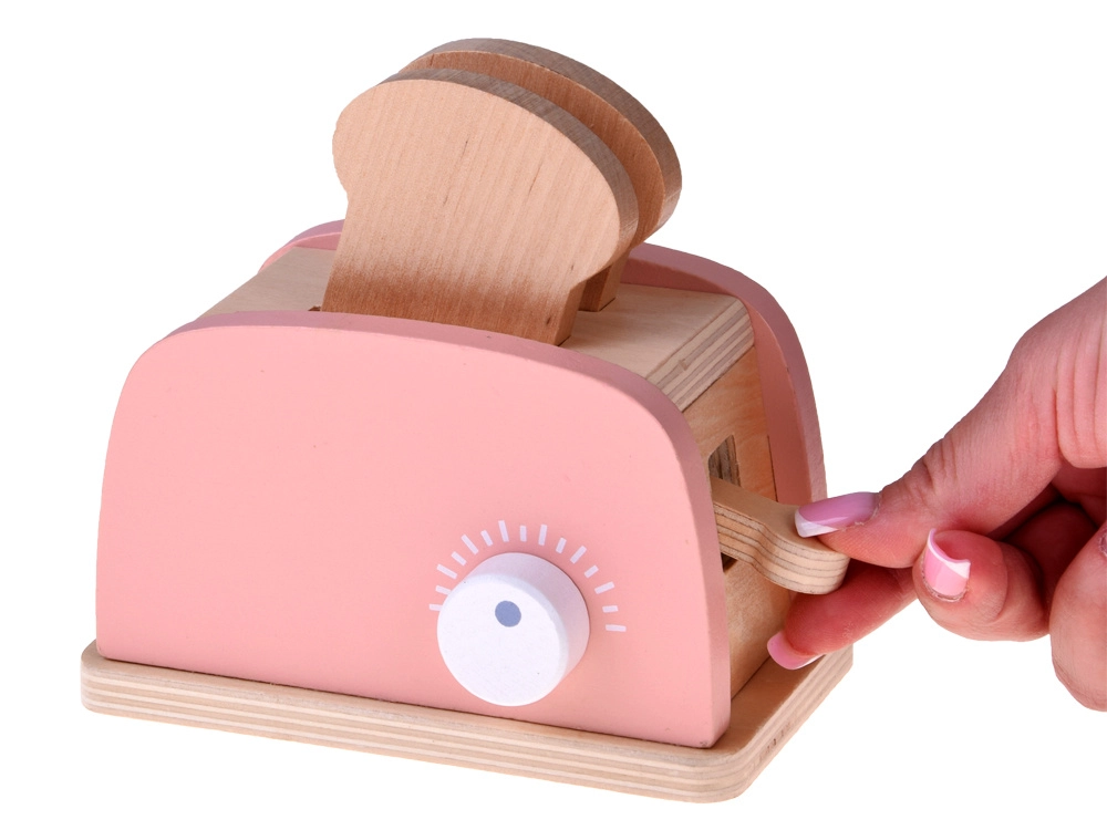 Toastscheiben einstecken, Hebel drücken – und schwupp, nach kurzer Zeit springen sie heraus! Der Drehregler vermittelt das Gefühl echter Einstellungen. Perfekt für „Frühstücks“-Rollenspiele und die Förderung der Feinmotorik.