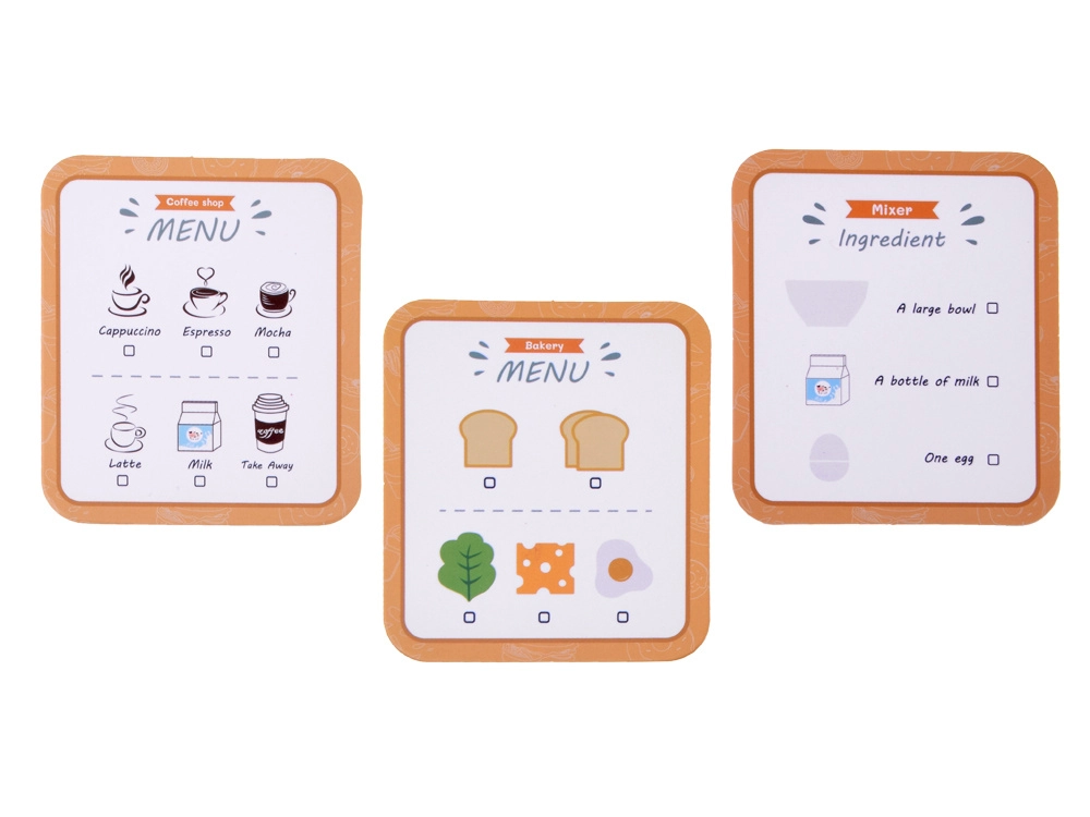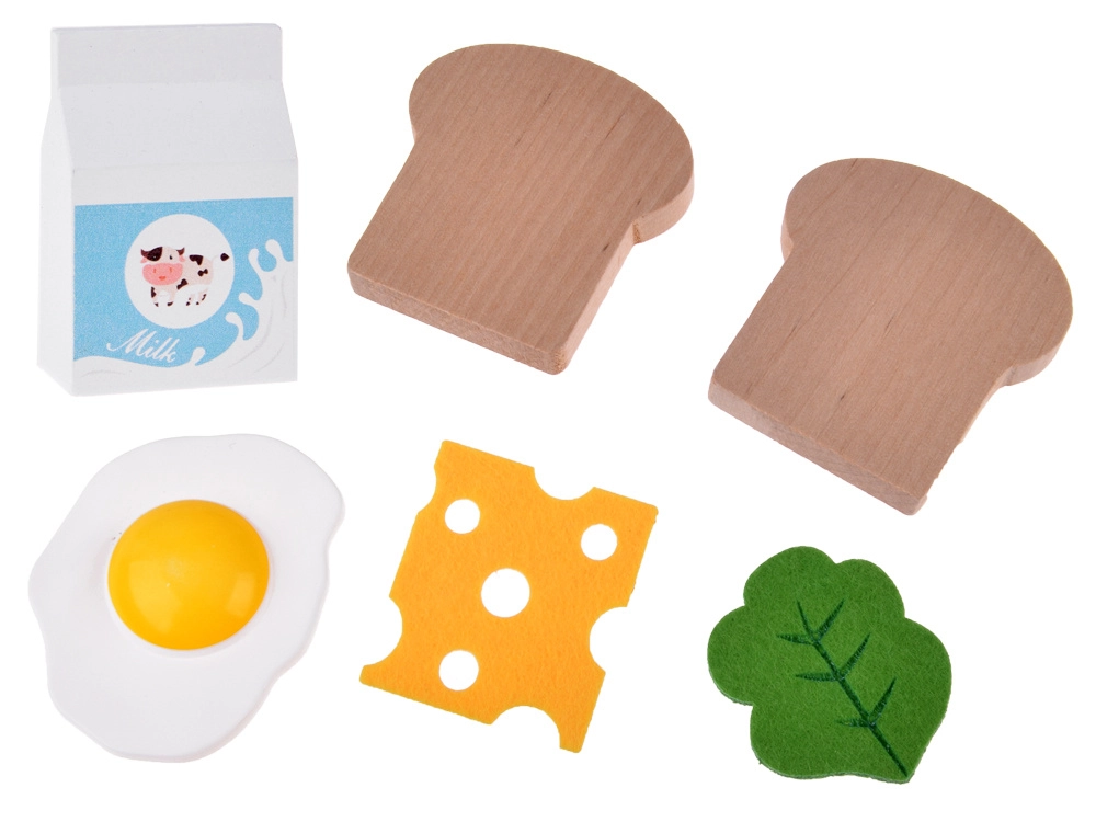 Inklusive umfangreichem Zubehör: Holzbrotscheiben, falsches Ei, Käsescheibe, Salatblatt, Milchkarton, Kaffeekapsel und Menü-/Rezeptkarten für noch mehr Spielspaß.