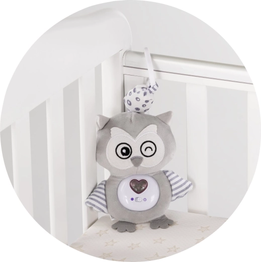 Holen Sie sich Ruhe und Unterhaltung in greifbare Nähe. Die Plüscheule CHIPOLOINO Owl kombiniert beruhigende Melodien, sanftes Licht und kuschelweiche Materialien – ideal, um Babys beim Einschlafen und auf Spaziergängen zu beruhigen und zu beschäftigen.