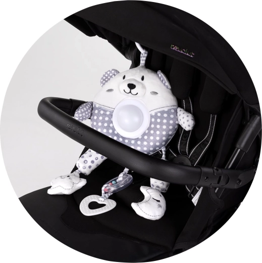 Der Plüschbär Big Bear ist ein weiches und sicheres Hänge-Spielzeug, das Ihr Baby während Spaziergängen und beim Ausruhen im Bettchen beschäftigt. Bunte Melodien und sanfte Lichteffekte fördern die Sinnesentwicklung und schaffen eine ruhige Atmosphäre.