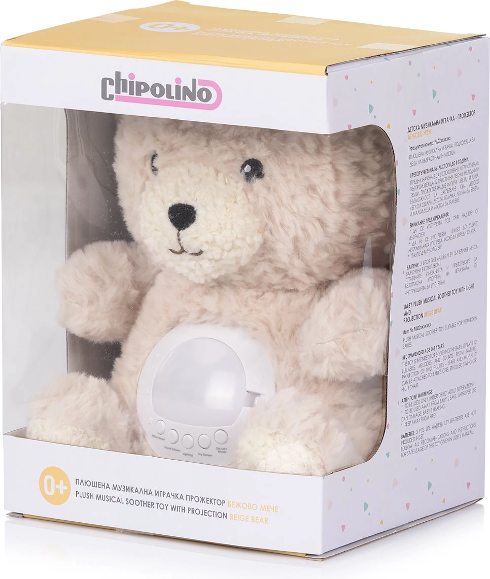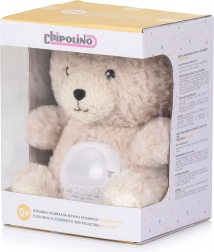 Der beige Plüsch-Teddybär CHIPOLINO ist ein weicher Begleiter, der Kindern beim ruhigen Einschlafen hilft. Er kombiniert beruhigende Geräusche, Melodien und sanfte Lichteffekte, die eine angenehme Schlafumgebung schaffen. Dank des Wein-Sensors aktiviert er sich von selbst, wenn das Kind zu weinen beginnt, und bietet sofortige Beruhigung ohne Ihr Eingreifen.