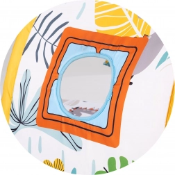 Die gepolsterte Unterlage mit Bogen und hängenden Spielzeugen motiviert das Baby zum Greifen und stärkt die Hand-Auge-Koordination.