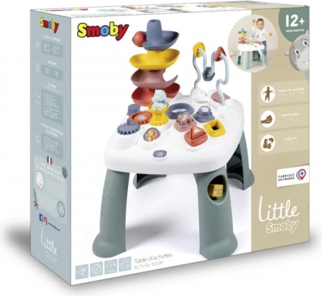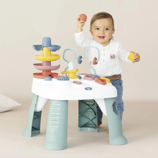 Der LITTLE SMOBY Activity Spieltisch ist für neugierige Kleinkinder ab 12 Monaten konzipiert. Die robuste Konstruktion und stabilen Beine sorgen für sicheres Spielen, während die vielfältigen Aktivitäten – vom Formenstecken bis zum Starten der Kugel vom Turm – die Sinne stimulieren und die Konzentration verbessern. Ideal für Kinderzimmer und Spielbereich.