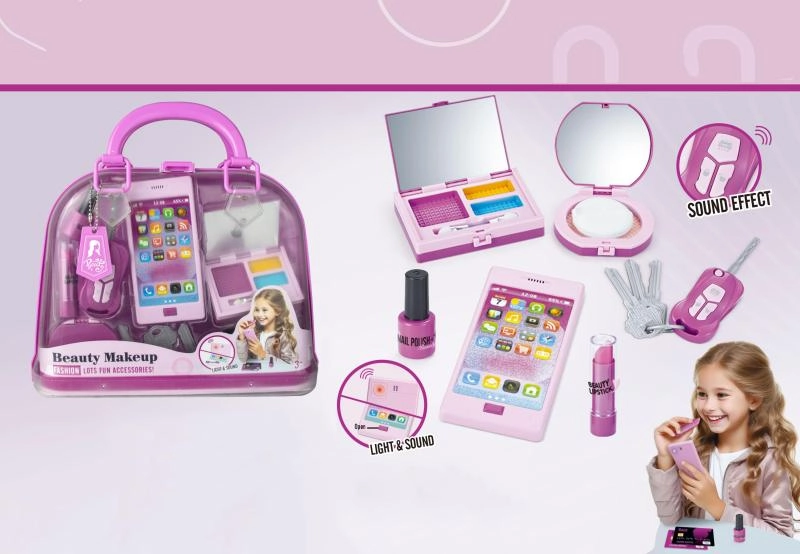 Kinderhandtasche, Mobiltelefon (Spielzeug), Schlüsselbund, Autoschlüssel, Make-up/Schminke (Spielzeuge), Zahlungskarten (Spielzeuge)