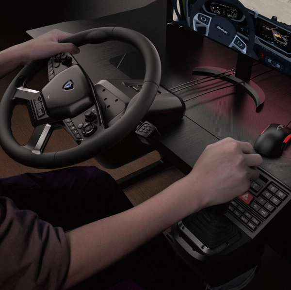 Entwickelt in Zusammenarbeit mit SCS Software für erstklassige Kompatibilität mit ETS2 und ATS. Im Lieferumfang enthalten sind Steam‑Keys für beide Spiele – einfach anschließen, konfigurieren und auf die offene Straße starten.