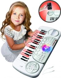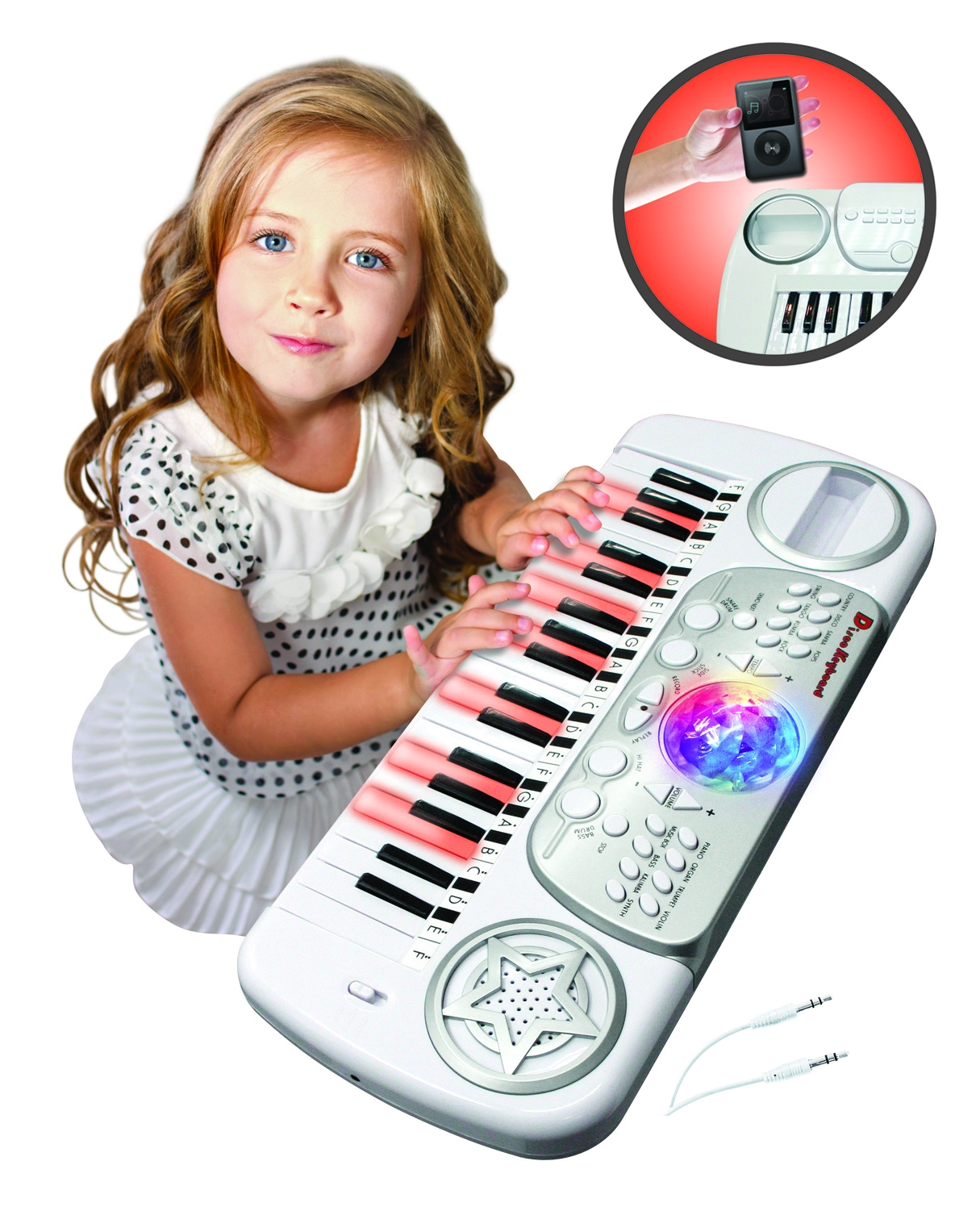 Dank 37 Tasten, 8 integrierten Instrumenten und 8 Rhythmen probieren Kinder verschiedene Klänge und Stile aus. Die Einstellung von Tempo und Lautstärke fördert die Kreativität, die Aufnahmefunktion mit anschließender Wiedergabe ermöglicht das Anhören eigener Werke. Durch das Anschließen eines Handys oder MP3-Players über den Steckanschluss können Lieblingslieder abgespielt und begleitet werden.