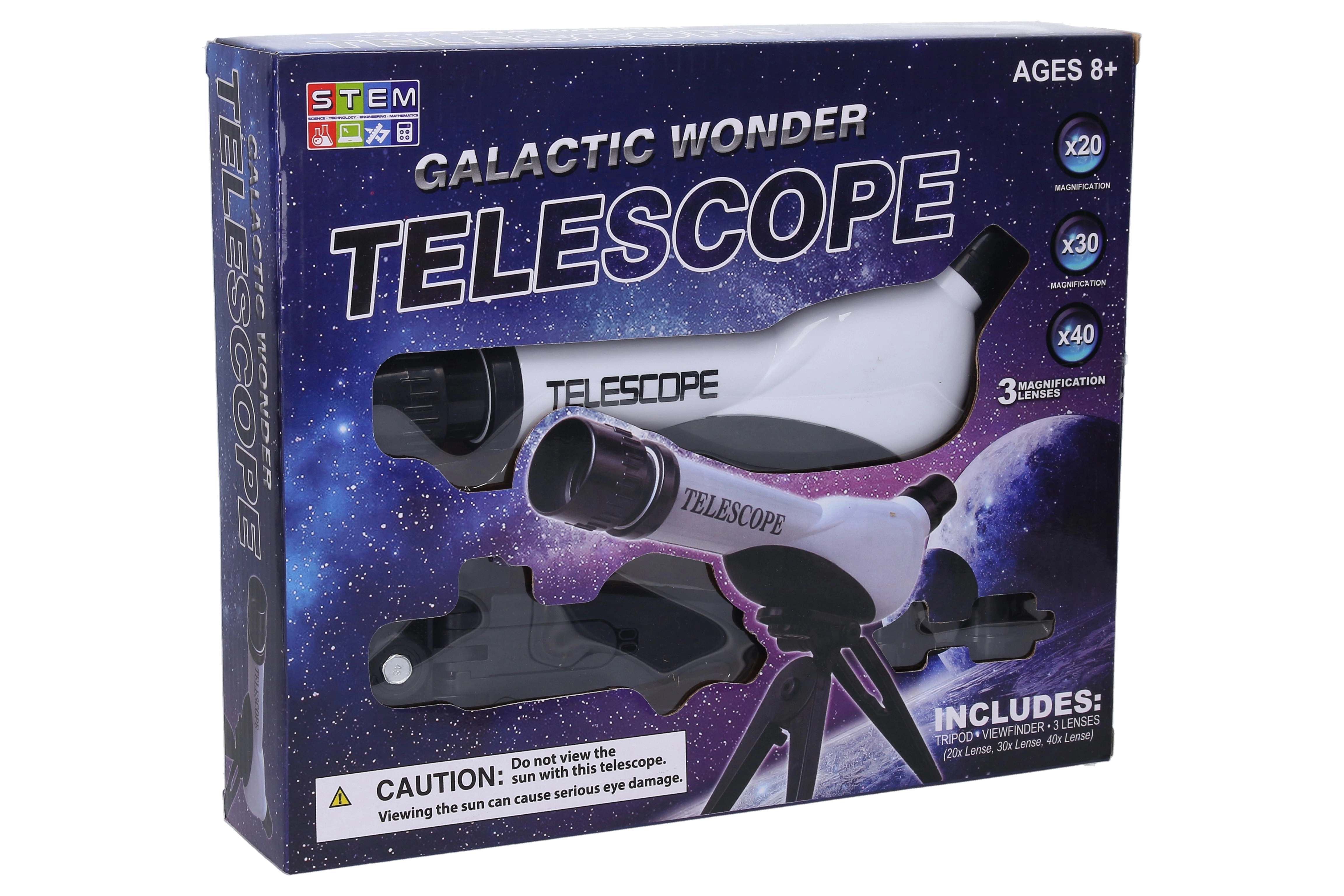 Das astronomische Teleskop ist die ideale Wahl für die ersten Schritte in die Astronomie. Dank der austauschbaren Linsen mit drei Vergrößerungsstufen nähern Sie Mond, helle Planeten und markante Sternhaufen mühelos heran. Das stabile Stativ sorgt für ein ruhiges Bild, während die intuitive Fokussierung durch Drehen des Objektivs auch von Einsteigern problemlos beherrscht wird.
