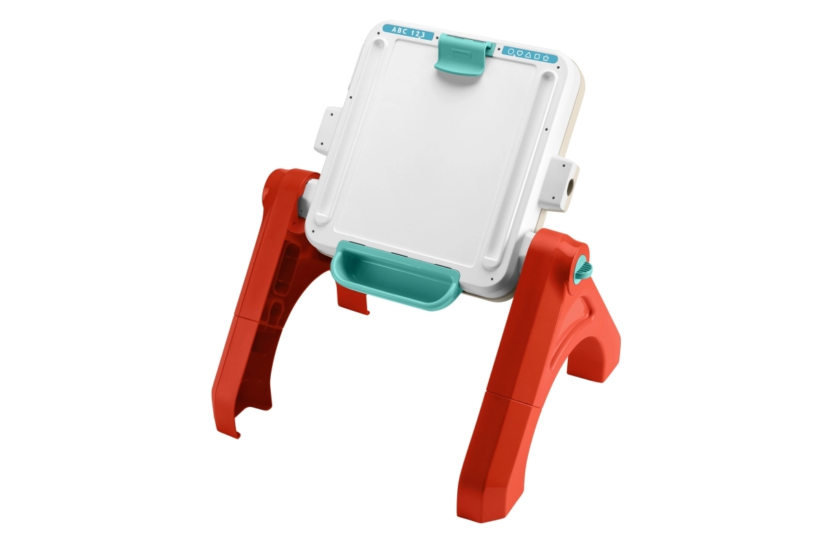 Vom Sitzen über das Stehen bis zum eigenständigen Gestalten. Der Tisch lässt sich im Handumdrehen in einen offenen Spieletisch oder eine stehende Staffelei für kleine Künstler verwandeln.