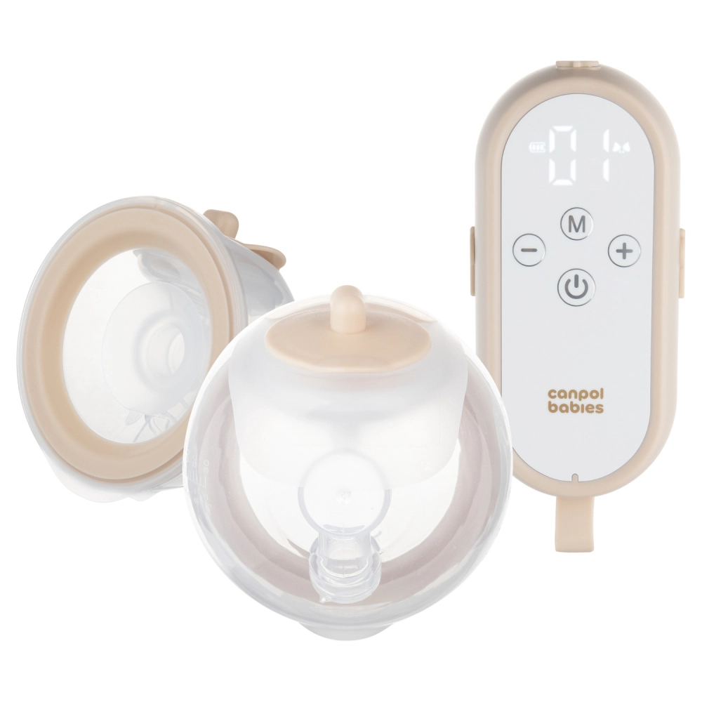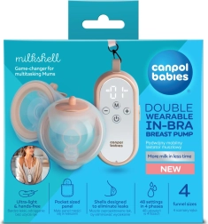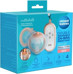 Canpol babies MilkShell ist eine moderne, doppelte, kabellose BH-Milchpumpe, die für komfortables, diskretes und effizientes Abpumpen entwickelt wurde. Ultraleichte Sammelbehälter (je 180 ml) mit weichem Trichter sitzen perfekt im BH, sodass Sie freihändig abpumpen können – zu Hause und unterwegs. Die Bedieneinheit mit übersichtlichen Tasten kann dank Kordel um den Hals getragen werden – alles ist griffbereit und einsatzbereit.
