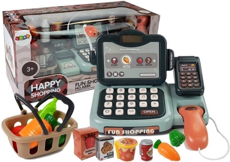 Im Lieferumfang ist alles enthalten: Kasse mit Waage und Kartenleser, Hand-Barcodescanner, Korb, Spielzeug-Lebensmittel (Kekse, Saft, Wasser, Eis, Cola, Gemüse), Zahlungskarte, Banknoten und 6 Kunststoffmünzen. Das Spiel ist maximal realistisch und fördert Fantasie sowie Feinmotorik.