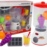Dieses realistische Set enthält einen Mixer mit transparentem Behälter, Deckel und praktischem Griff, ergänzt durch Trauben, Apfel und Orange, damit Kinder ihre eigenen Fruchtshakes „mixen“ können. Licht- und Bewegungseffekte sorgen für noch mehr Spaß beim Küchenrollenspiel.