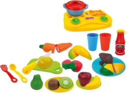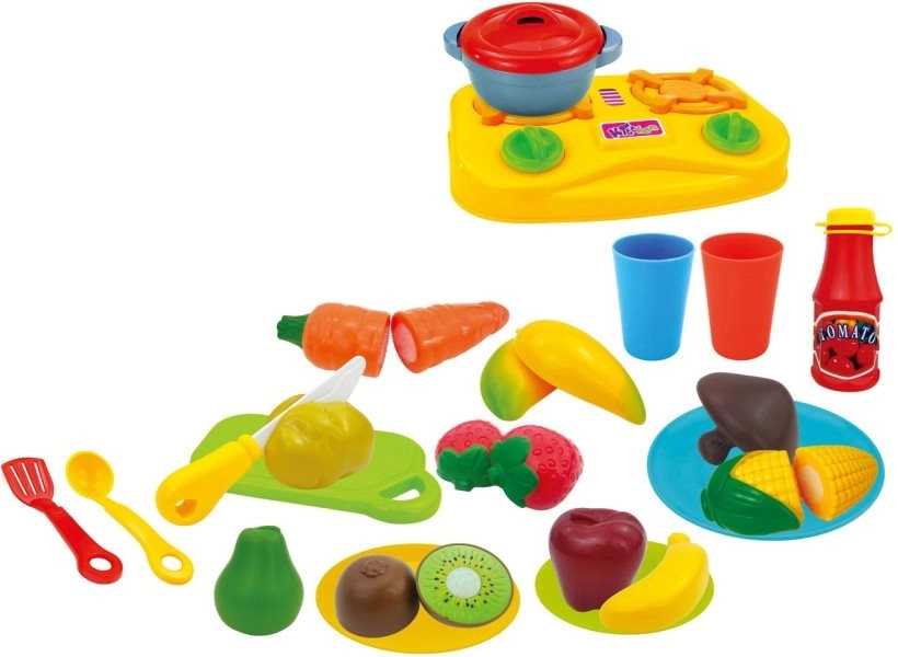 Der praktische Korb erleichtert das Aufbewahren und Transportieren, sodass das Set sowohl für das Spielen zu Hause als auch unterwegs geeignet ist. Das Set bietet ein realistisches Kochspiel, unterstützt Rollenspiel sowie das Erkennen von Farben und Formen.