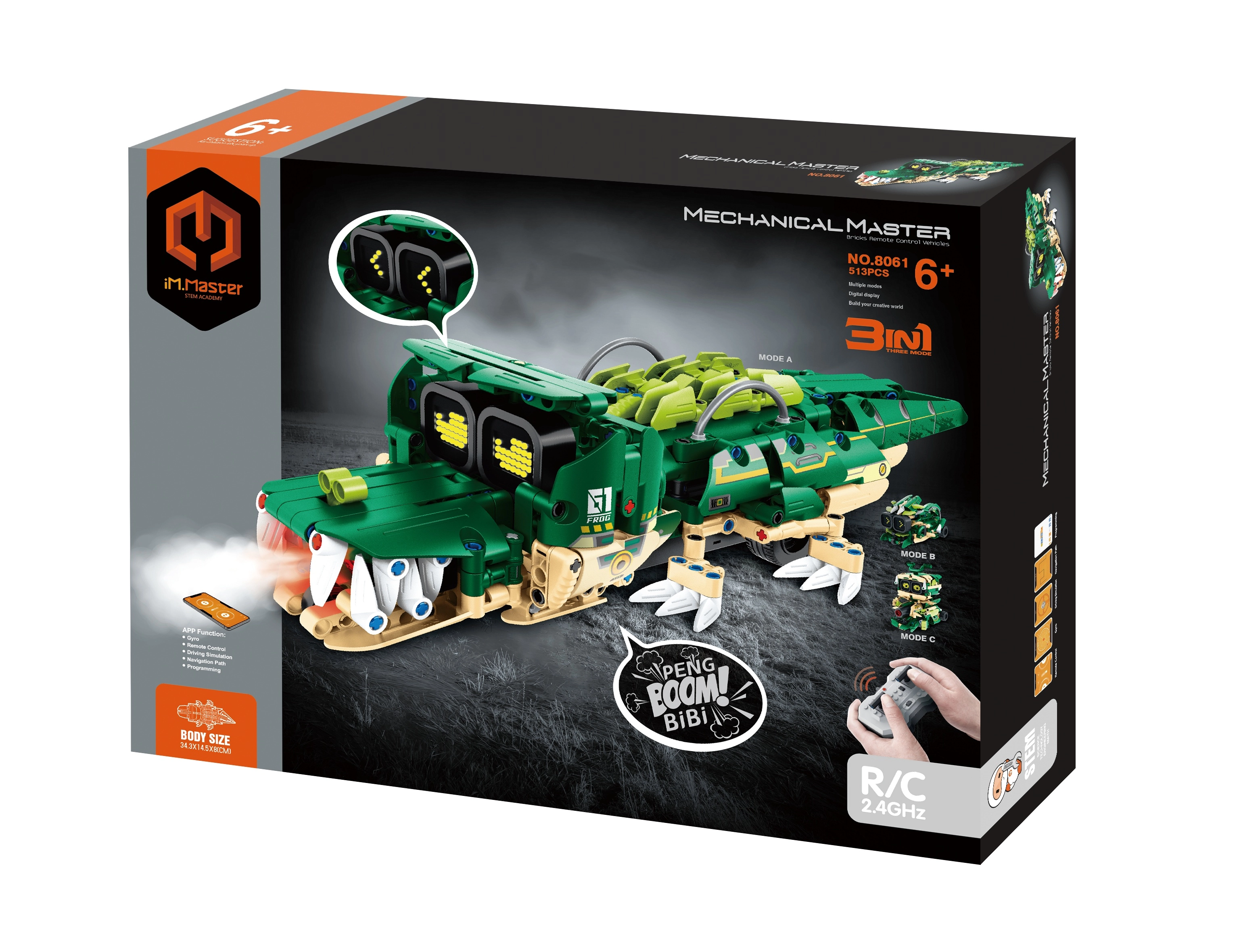Entdecken Sie die kreative Welt der Robotik mit dem 3-in-1 Roboter-Krokodil-Baukasten. Bauen Sie das Hauptmodell Krokodil oder weitere Varianten und steuern Sie diese bequem mit dem RC-Fernbediener. Integrierte Lichteffekte sorgen für einen realistischen Eindruck und noch mehr Spielspaß. Dank der durchdachten Konstruktion ist das Modell stabil und bereit für stundenlange Unterhaltung.