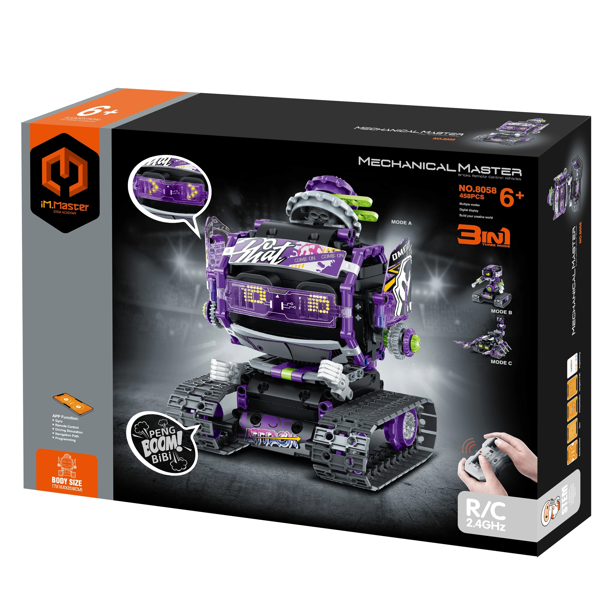 Bauen Sie Ihren eigenen Roboter mit „Mütze“ und entdecken Sie die Faszination von Konstruktionssets. Dieser vielseitige 3-in-1-Bausatz ermöglicht es, drei unterschiedliche Modelle aus einem Teileset zusammenzusetzen und jedes davon per Fernsteuerung zum Leben zu erwecken. Die kompakte Größe von 17 × 16,6 × 20,6 cm passt sowohl ins Kinderzimmer als auch ins Reisegepäck.