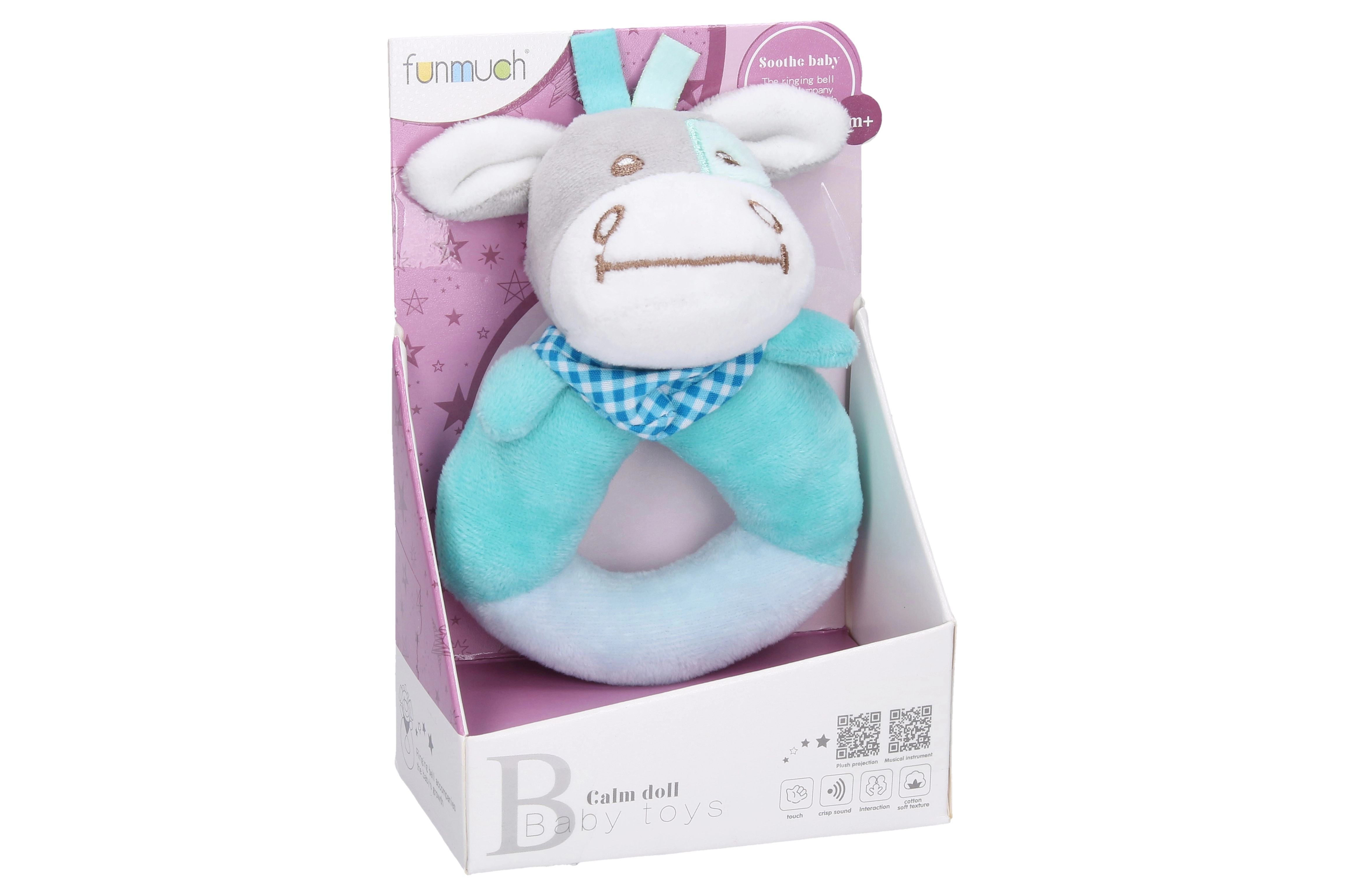 Diese weiche Rassel für die Kleinsten kombiniert ein süßes Esel-Design mit einem funktionalen Ring für einfaches Halten. Dank des angenehmen Plüschs und des sanften Rasselns fördert sie das Hör-, Tast- und Bewegungsvermögen des Babys. Die leichte Konstruktion eignet sich für erste Greif- und Schüttelversuche.