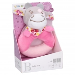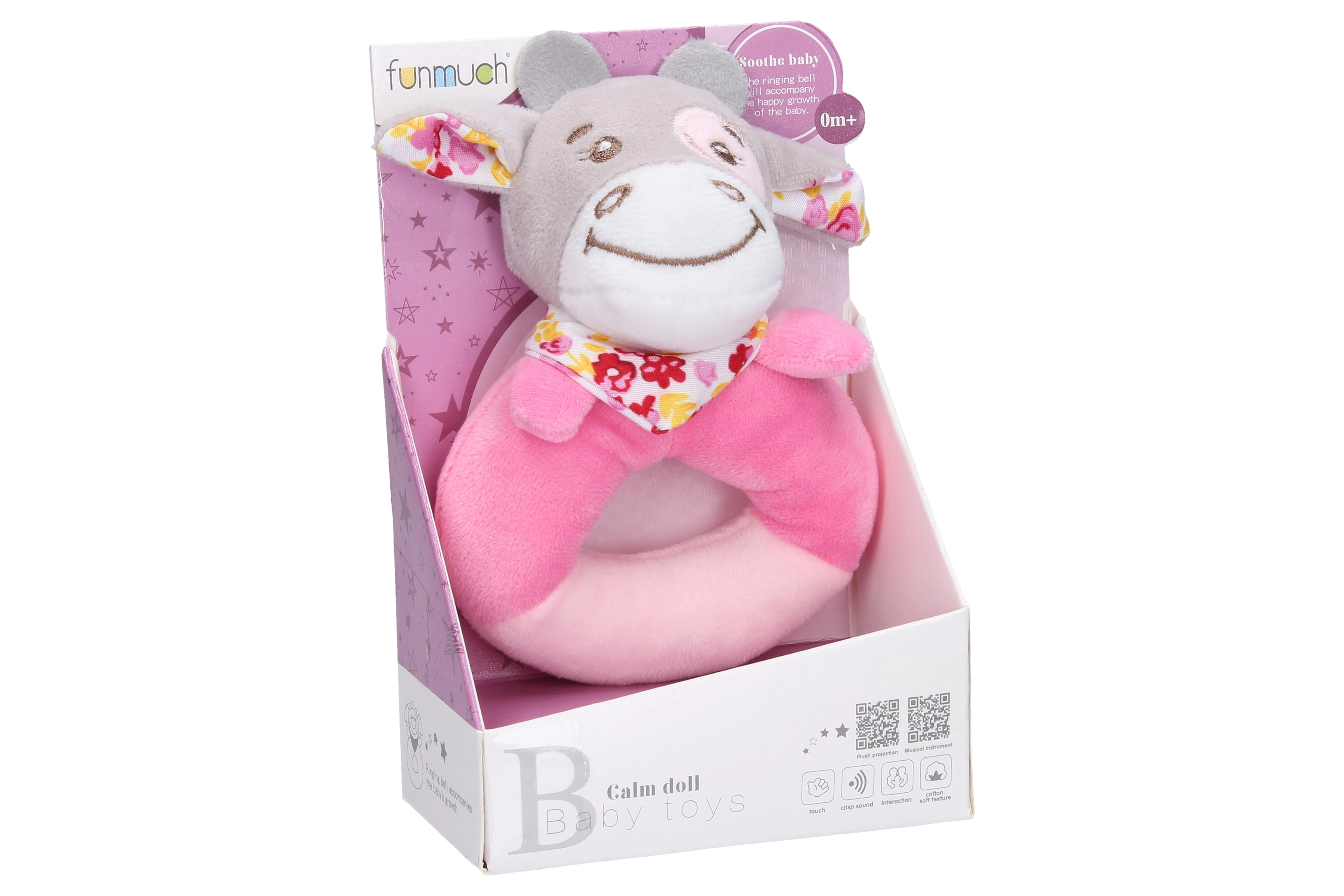 Diese Plüsch-Rassel in Ringform ist für kleine Kinderhände konzipiert. Das niedliche Kälbchen aus weichem Material bereitet Kindern Freude beim Fühlen und Hören. Die leichte Konstruktion erleichtert das Halten und das sanfte Rasseln unterstützt die auditive Wahrnehmung.