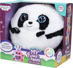 Niedlicher Plüschpanda, der leuchtet, Lieder abspielt und aufgenommenen Ton nachspricht. Er ist 21 cm groß, lässt sich über die Pfoten leicht bedienen und begeistert Kinder mit Spaß und Lichteffekten.