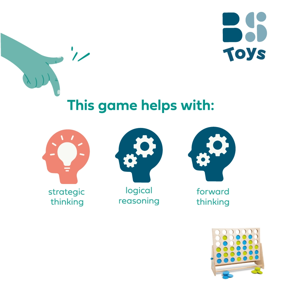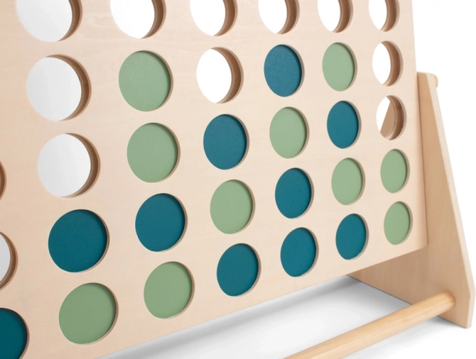 Die Spieler werfen abwechselnd blaue und grüne Steine in das Gitter und versuchen, eine Vierer-Verbindung ihrer Farbe zu bilden. Gleichzeitig blockieren sie den Gegner und planen mehrere Züge im Voraus – ideal für das Training von logischem Denken und Taktik.