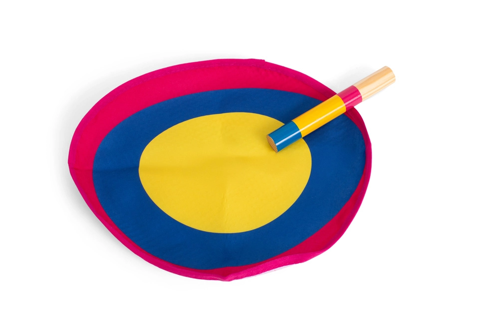 Leichte textile Zielscheiben in kräftigen Farben sind schonend für Boden und Kinderfüße. Sicher für den Innenbereich und robust genug für draußen.