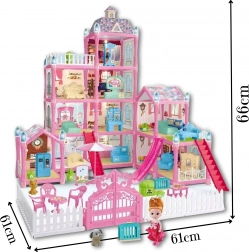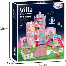 Entdecken Sie das stilvolle, mehrstöckige WOOPIE-Puppenhaus, das Kinder mit seiner umfangreichen Ausstattung und detailreichen Ausführung begeistert. Dank 275 Elementen inklusive Möbeln, Accessoires und Figuren können kleine Baumeister eigene Geschichten erschaffen und das Interieur ganz nach ihrer Fantasie umgestalten. Die Nachtbeleuchtung verwandelt das Häuschen auch nach Einbruch der Dunkelheit in eine wunderschöne Szene und verleiht dem Spiel eine magische Atmosphäre.
