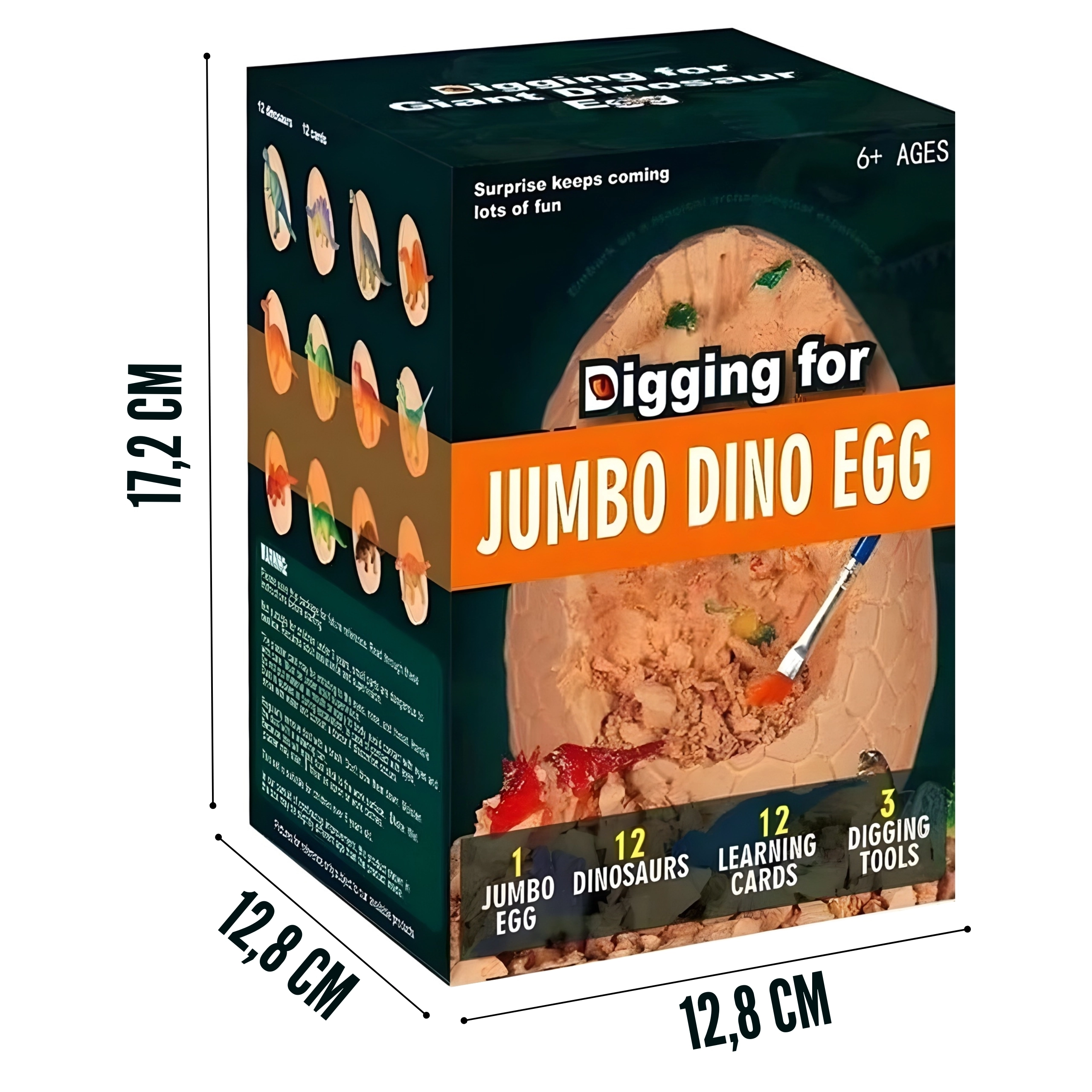 Im Set ist alles Nötige enthalten: ein kleiner Hammer, Meißel und Pinsel für sicheres Freilegen sowie 12 Karten mit Dinosaurier-Beschreibungen für einfaches Lernen. Eine tolle Geschenkidee und Aktivität für gemeinsamen Familienspaß und Spielen mit Freunden.