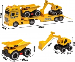 Entdecken Sie ein großes Bauset, das alle kleinen Fans von Arbeitsmaschinen begeistert. Der Abschleppwagen mit beweglicher Laderampe lädt die beiliegenden Fahrzeuge leicht auf und ab. Realistische blinkende Warnleuchten sowie Motor-, Hup- und Sirenengeräusche, die per Knopfdruck aktiviert werden, sorgen für Authentizität. Der Bagger verfügt über einen manuell steuerbaren Arm mit Schaufel, und der Kipper ist mit einer kippbaren Mulde für das „Abladen von Material“ ausgestattet.