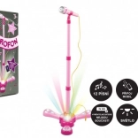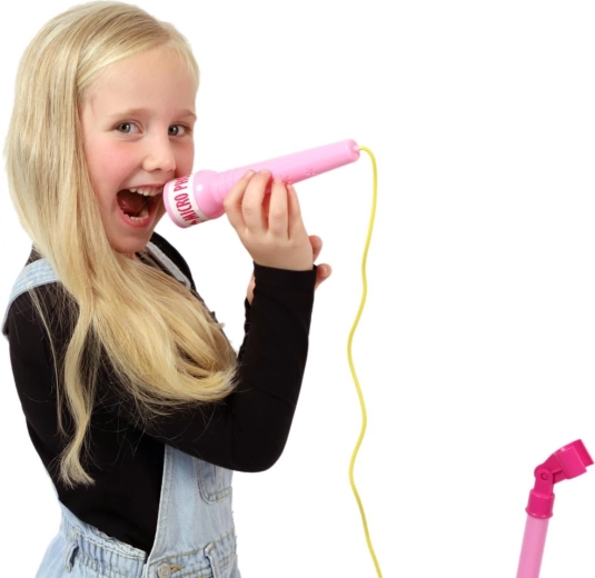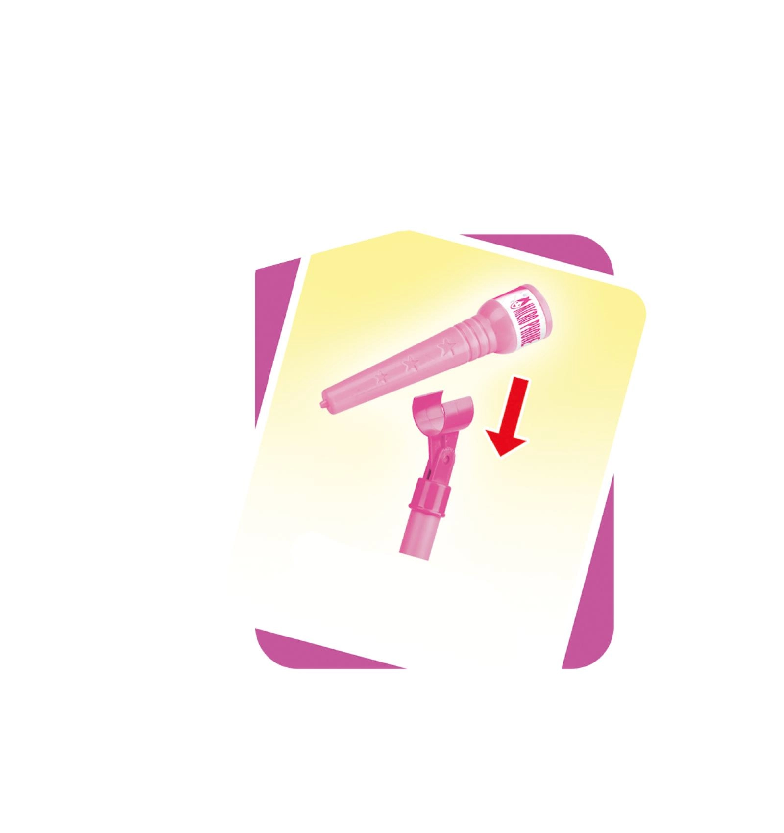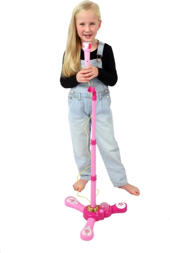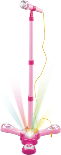 Veranstalten Sie zu Hause eine unvergessliche Karaoke-Show. Dieses rosa Mikrofon mit stabilem Dreibein-Stativ begeistert mit Lichteffekten und spielt 12 vorinstallierte Lieder ab. Ein MP3-Player oder ein Mobiltelefon lässt sich problemlos anschließen, um Lieblingshits abzuspielen.