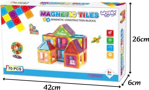 Dieses magnetische Bauset ist ideal für kleine Konstrukteure, die Formen, Farben und Prinzipien des räumlichen Bauens erkunden möchten. Die Teile haften dank starker Neodym-Magnete zuverlässig, wodurch das Zusammenstecken intuitiv, sicher und unterhaltsam ist. Kinder können 3D-Modelle und flache Muster bauen und dabei Fantasie und Geduld fördern.