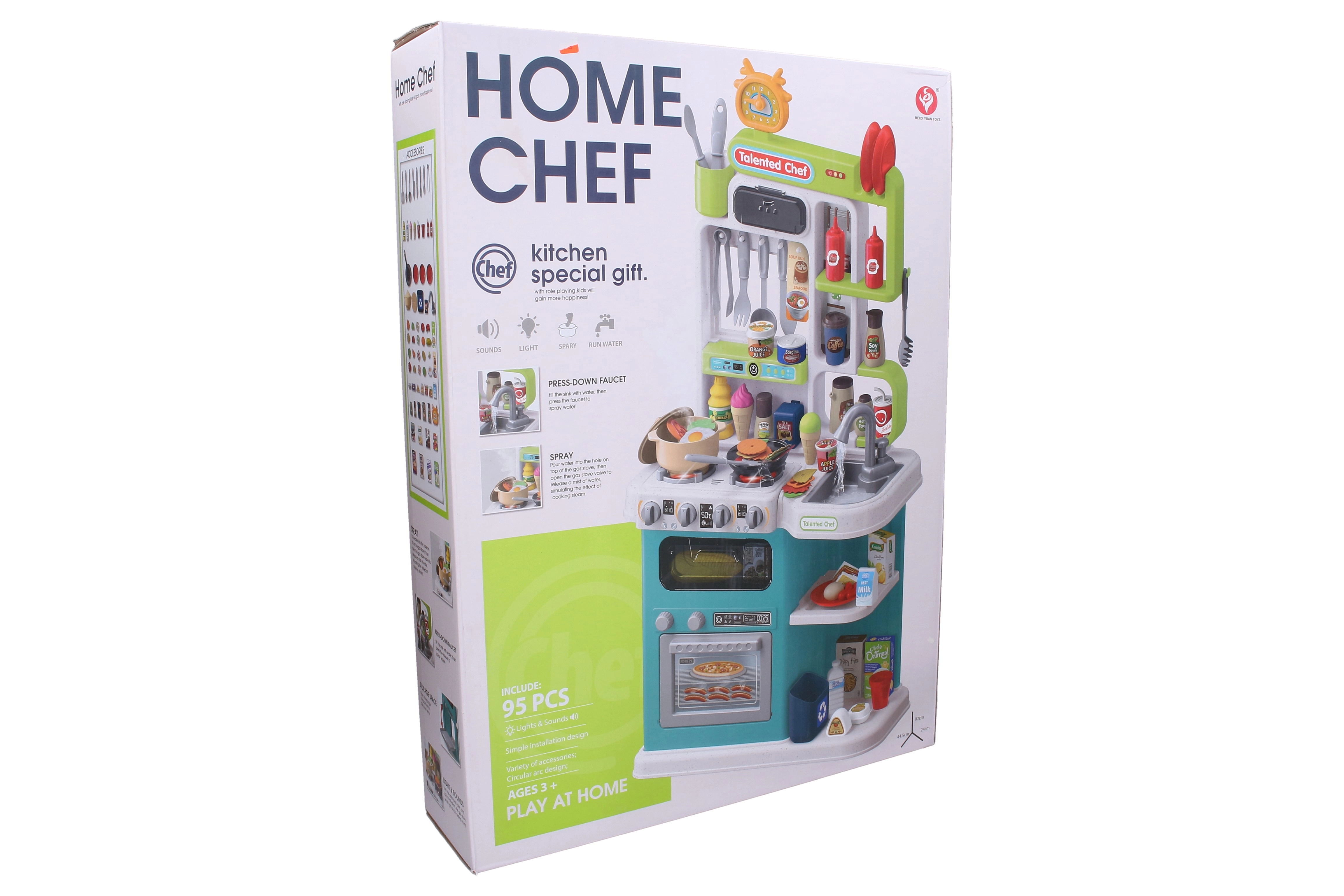 Kinderküche mit Effekten 92 cm bietet ein realistisches Kocherlebnis in kindgerechter und sicherer Ausführung. Dank Licht- und Soundeffekten wird das Spielen noch fesselnder und unterstützt die Entwicklung von Motorik, Kreativität und sozialen Kompetenzen.