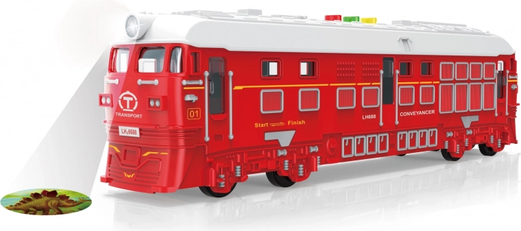 Dieser rote Schwungrad-Zug mit einer Länge von 33 cm bietet Kindern ein realistisches Fahrerlebnis. Dank Licht- und Soundeffekten sowie integrierter Projektion wird das Spiel noch fesselnder. Die Bedienung ist einfach – drücken Sie die Knöpfe auf dem Dach und genießen Sie Zug- und Eisenbahngeräusche.