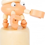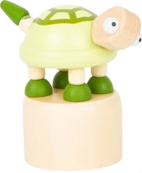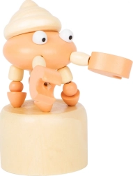 Drücken Sie den unteren Knopf und beobachten Sie, wie sich das Meerestier wellenförmig bewegt, schwankt und sich wieder aufstellt. Eine einfache Mechanik, die Kinder begeistert.