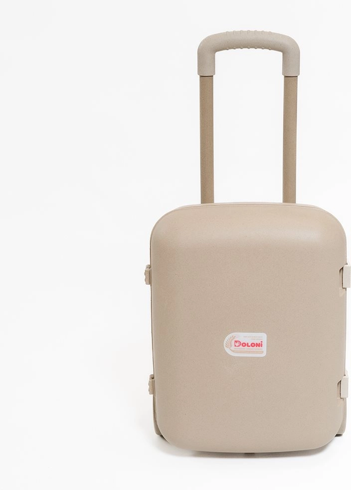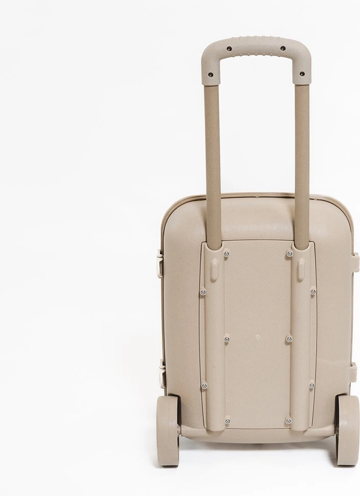 Praktischer und niedlicher Kinderkoffer mit Rollen aus umweltfreundlichem Material auf Basis von Weizenstroh. Bietet Leichtigkeit, Robustheit und einen höhenverstellbaren Teleskopgriff entsprechend der Größe des Kindes. Dank der kompakten Abmessungen und des durchdachten Innenraums passen Lieblingsspielzeuge und Kleinigkeiten für unterwegs bequem hinein.