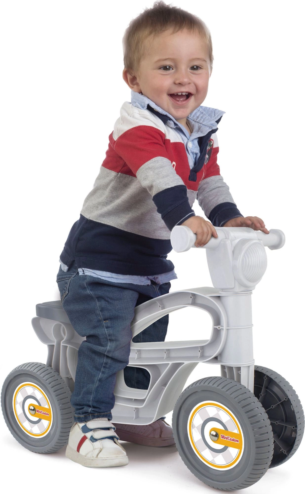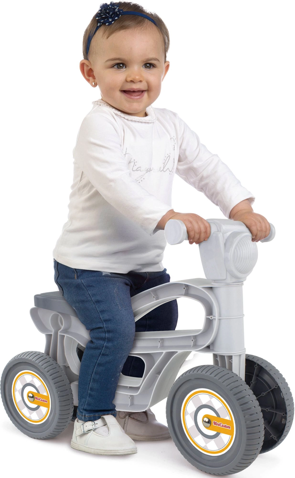 Entdecken Sie das graue Laufrad Mini Custom CHICOS – ein attraktives „Motorrad“ für die kleinsten Fahrerinnen und Fahrer. Dank des geringen Gewichts und der vier Räder ist die Fahrt stabil und sicher, was die Motorik fördert und das Halten des Gleichgewichts unterstützt. Die robuste Konstruktion hält der täglichen Belastung zu Hause und im Garten stand.