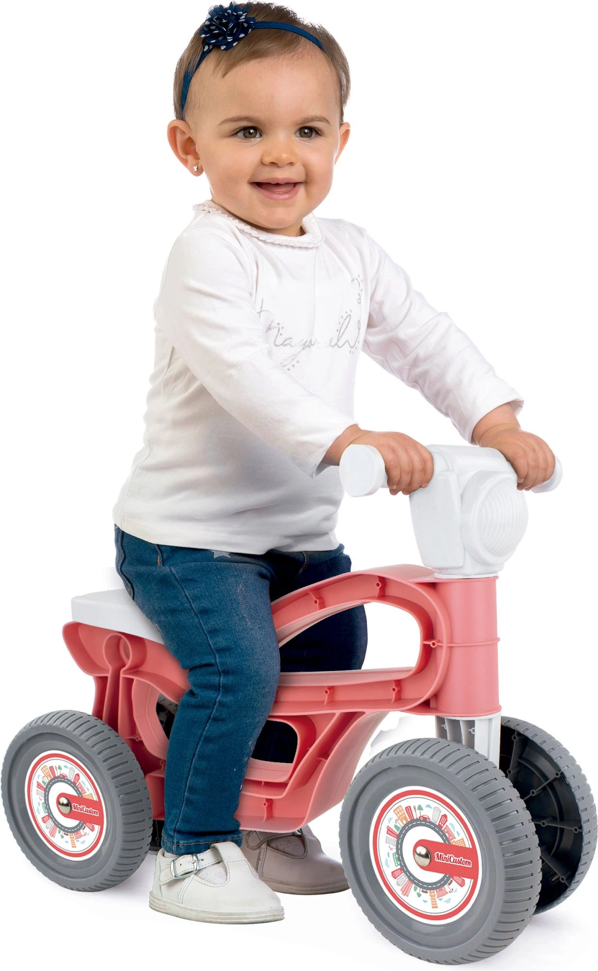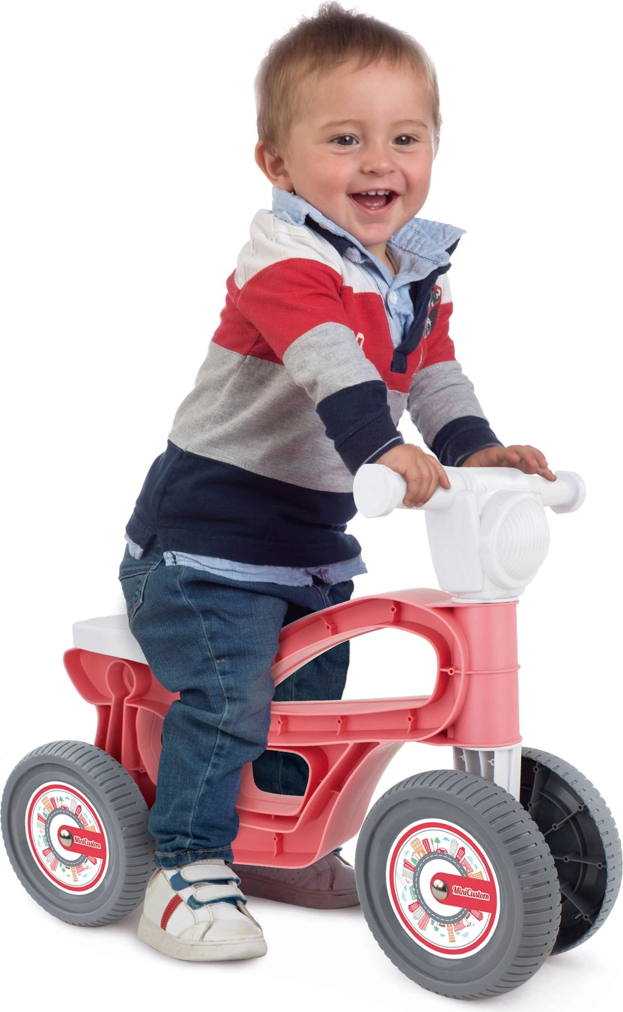Das stylische Motorrad-Laufrad fördert die Entwicklung der Grobmotorik und des Gleichgewichts bei Kindern von 10 bis 36 Monaten. Dank der vier Räder ist es außergewöhnlich stabil, zugleich leicht und einfach zu steuern. Die korallenfarbene Ausführung begeistert kleine Fahrer und ihre Eltern.