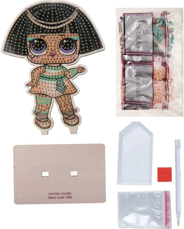 Diamantmalerei ist eine großartige Möglichkeit, den Kopf freizubekommen und zugleich eine originelle Dekoration mit dem Motiv LOL Surprise: Pharaonin zu gestalten. Der Ablauf ist intuitiv – die einzelnen Steinchen werden mit Wachs am Stift aufgenommen und auf das markierte Feld übertragen. Das Ergebnis ist ein effektvolles, funkelndes Bild, das Sie dank des Ständers einfach ausstellen können.