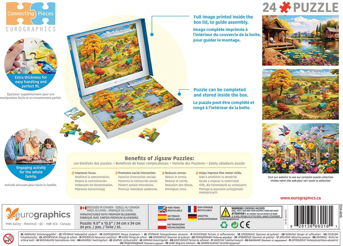 Die Puzzle der Connecting Pieces-Kollektion sind so gestaltet, dass sie für alle zugänglich und freudvoll sind. Dank der größeren Teile lassen sie sich leicht greifen, was das Training der Feinmotorik sowie die Konzentration unterstützt. Das Motiv „Ruhiges Leben“ strahlt eine friedliche Atmosphäre aus, die zur Entspannung beiträgt und Stress reduziert.